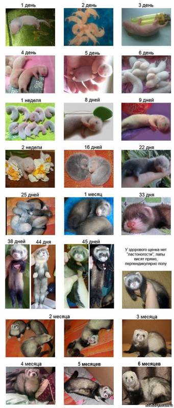 На фото показано как развивается хорек от рождения и до полугода:))